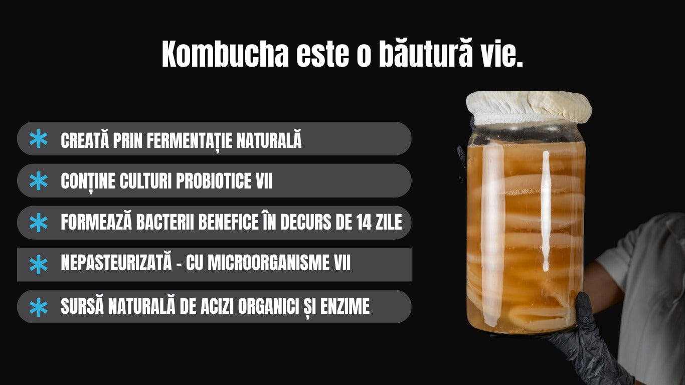 Kombucha este o băutură răcoritoare, ușor acidulată și fructată, care amintește de cidru, dar fără conținutul de zahăr adăugat. Mizând pe trei arome, am selectat cele mai proaspete, sănătoase și versatile ingrediente naturale, astfel încât să cunoașteți cel mai bun Kombucha din fiecare sticlă Acum este rândul vostru să încercați să ne spuneți ce credeți!